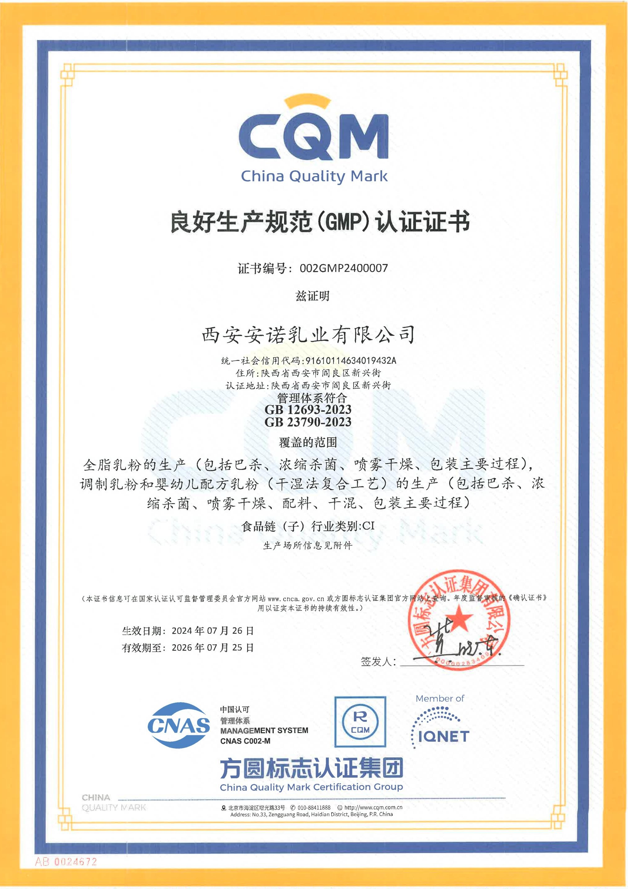 西安安諾乳業有限公司始建于1973年,迄今已有五十多年的發展歷史,安諾對于產品質量有嚴控體系網,確保每一批鮮奶、每一批原輔料、每一個過程、每一款產品,均按標準規范持之以恒,確保過程嚴謹有序,保證產品質量。